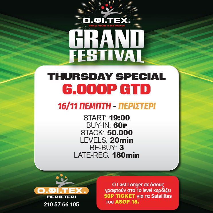Ο.ΦΙ.ΤΕΧ.: Thursday Special στις 19:00 με 6.000p gtd