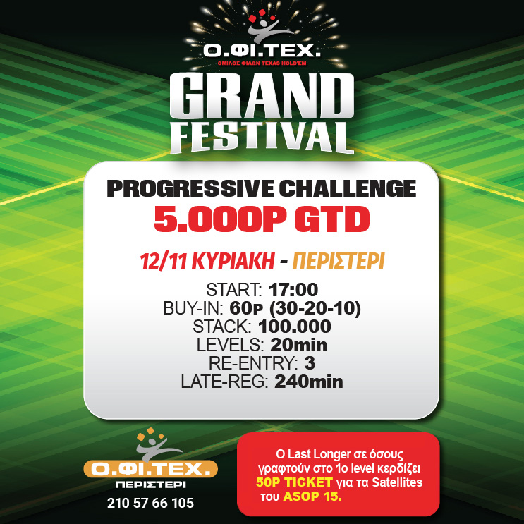 O.ΦΙ.ΤΕΧ.: Progressive Challenge στις 17:00 με 5.000p gtd