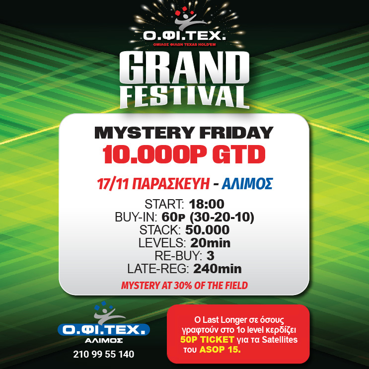 O.ΦΙ.ΤΕΧ.: Mystery Friday με 10.000p gtd στις 18:00