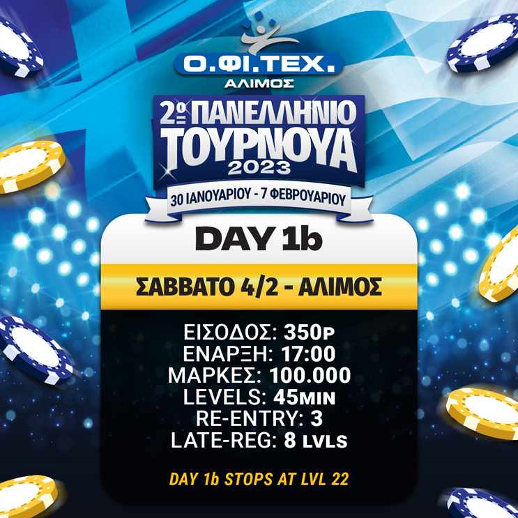Ο.ΦΙ.ΤΕΧ.: 55 παίκτες στη Day 2, στις 17:00 η Day 1b (stacks)