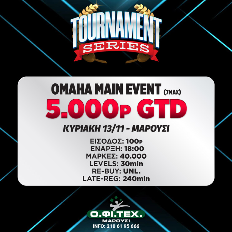 O.ΦΙ.ΤΕΧ.: Στις 18:00 το Omaha main event με 5.000p gtd!