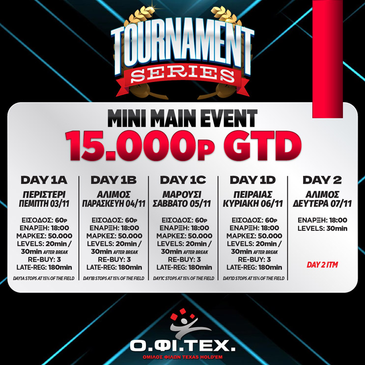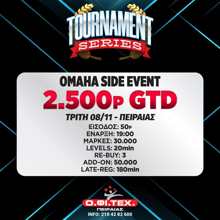 Ο.ΦΙ.ΤΕΧ.: Στις 19:00 το PLO side event με 2.500p gtd