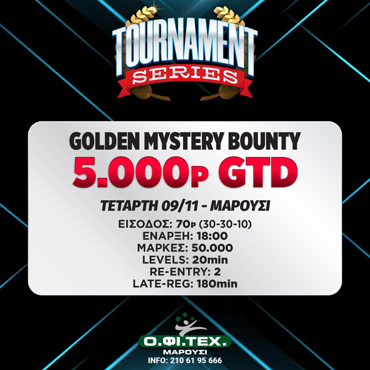 Ο.ΦΙ.ΤΕΧ.: Στις 18:00 το Golden Mystery Bounty με 5.000p gtd!