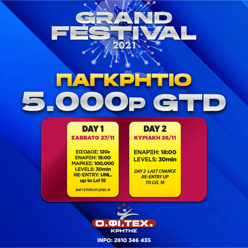 Το πολύ-αναμενόμενο 350p main event του Grand Festival (60.000p gtd) ξεκινάει σήμερα … Read More