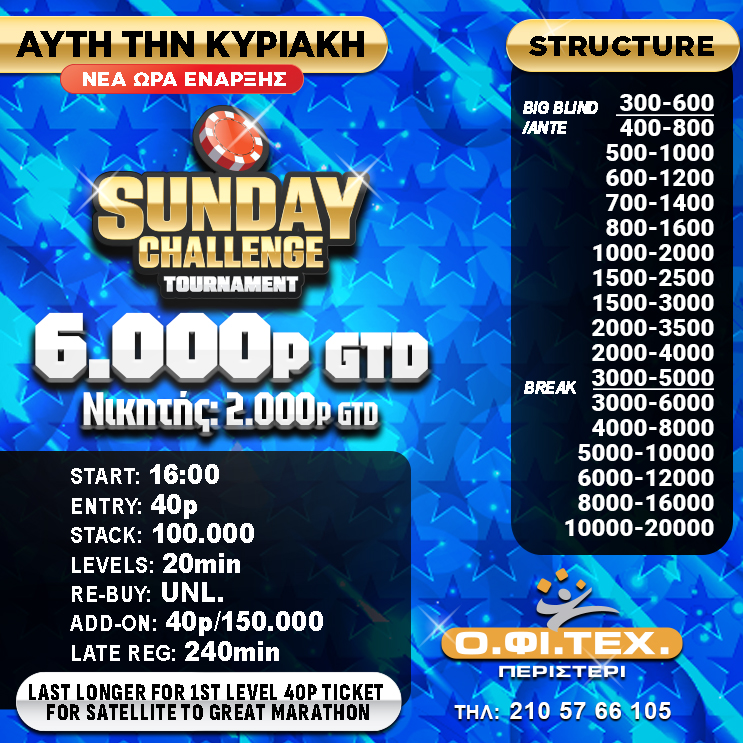 O.ΦΙ.ΤΕΧ.: Με 6.000p gtd το κυριακάτικο challenge