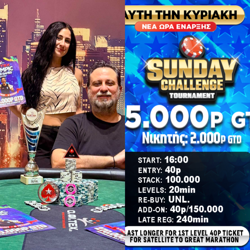 Στους 8.000p ανήλθε το prize pool στο Sunday Challenge του Περιστερίου (101e/105r/58a) … Read More