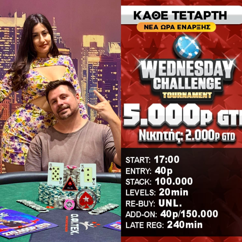 Στους 7.000p ανήλθε το prize pool στο Wednesday Challenge του Αλίμου (77e/105r/37a) … Read More