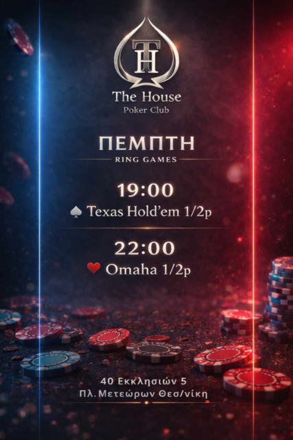 Το The House Poker Club φιλοξενεί και σήμερα ring games από νωρίς … Read More