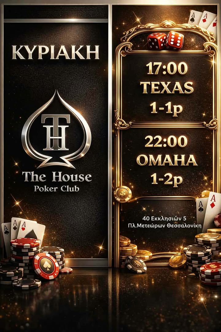 The House Poker Club: Texas στις 19:00 και Omaha στις 22:00 + bonus