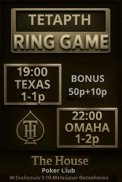 The House Poker Club: Σαββατόβραδο με ring games + bonus