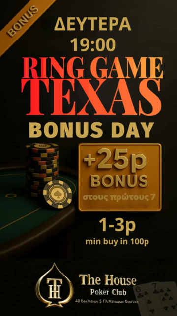 The House Poker Club: Bonus day η Δευτέρα στα Texas games