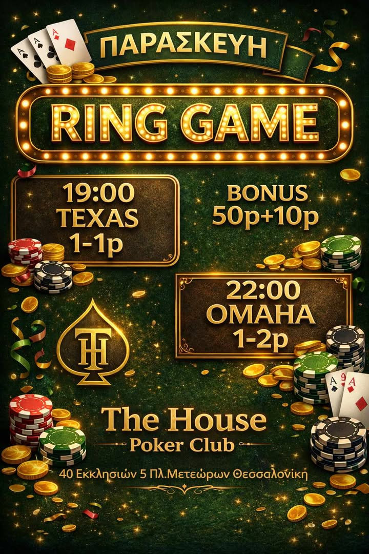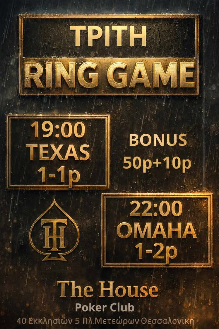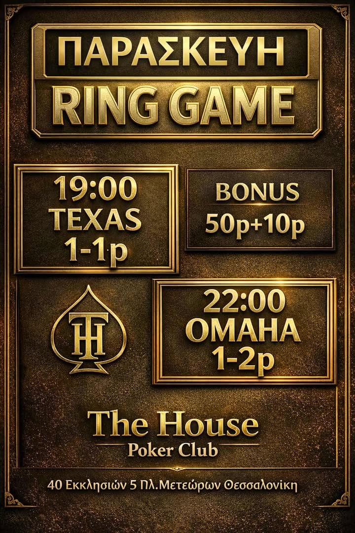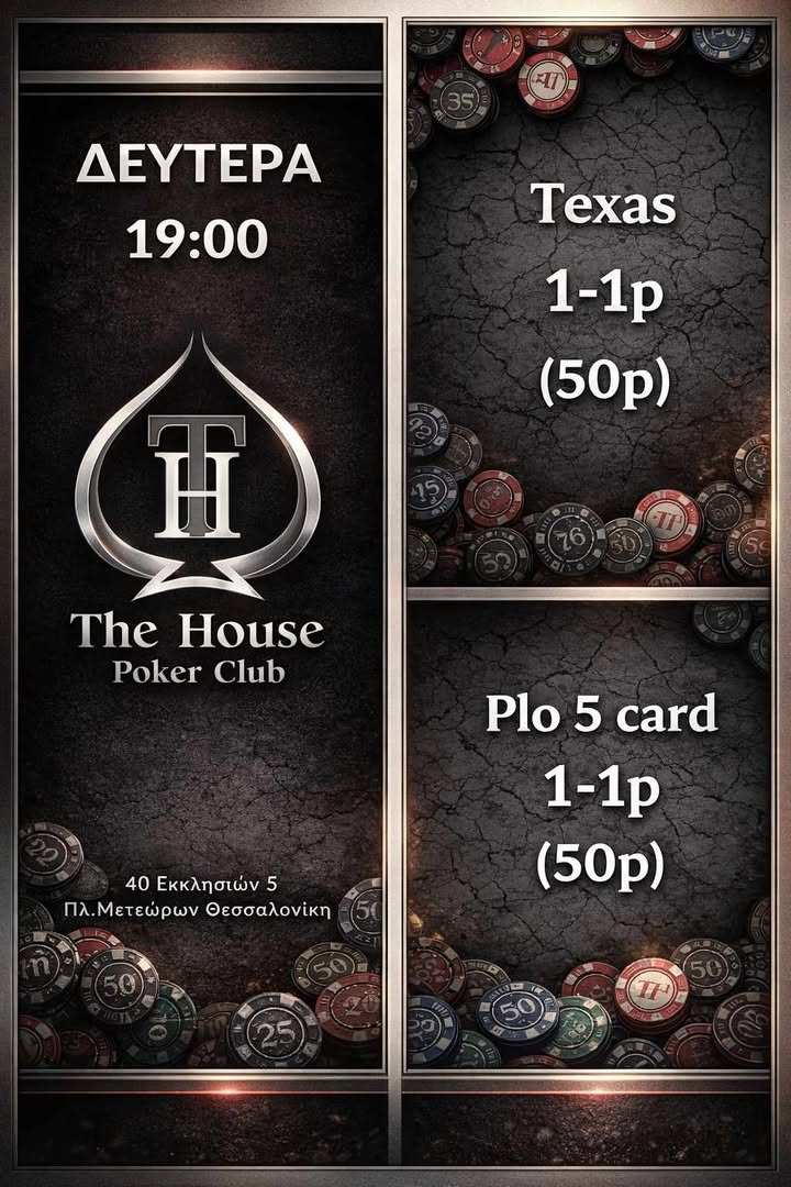 The House Poker Club: Τexas games στις 19:00 και Omaha games στις 22:00