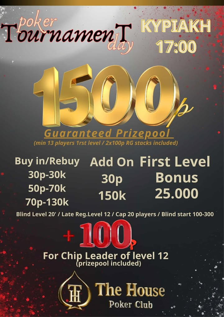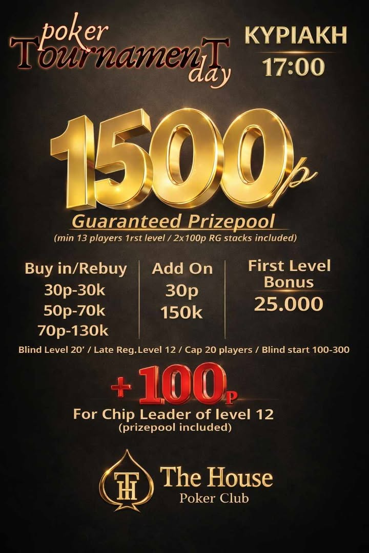 Βοnus day σήμερα στο The House Poker Club με τους πρώτους επτά … Read More
