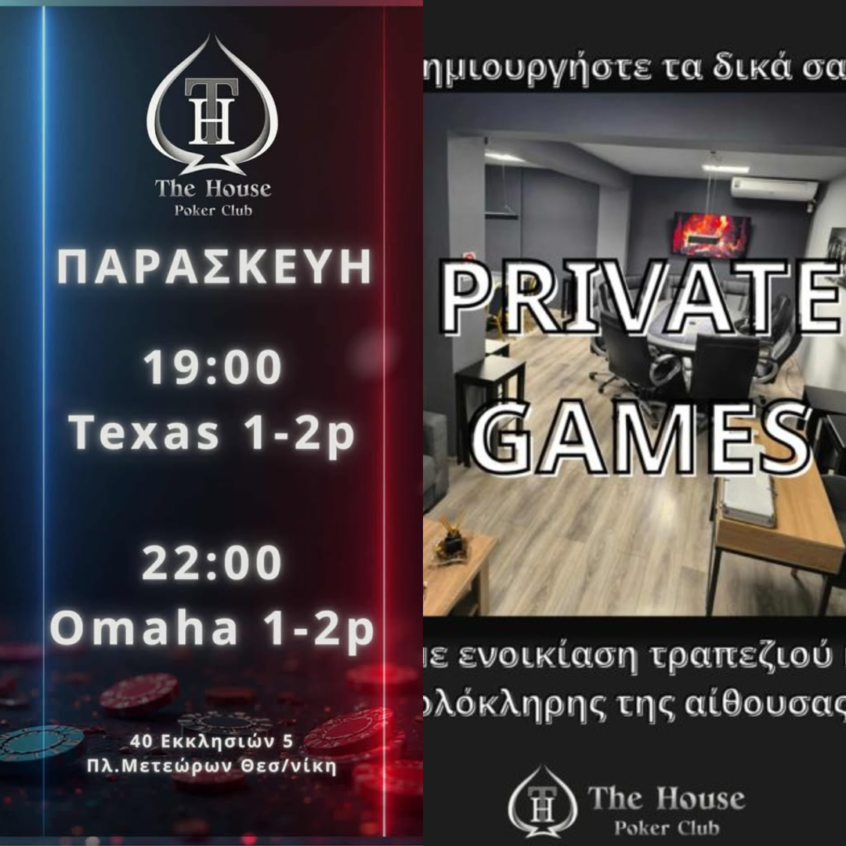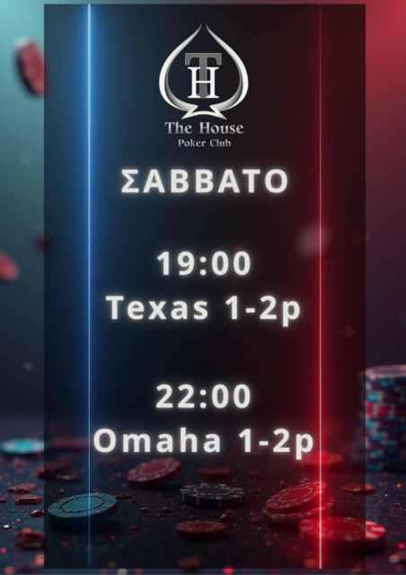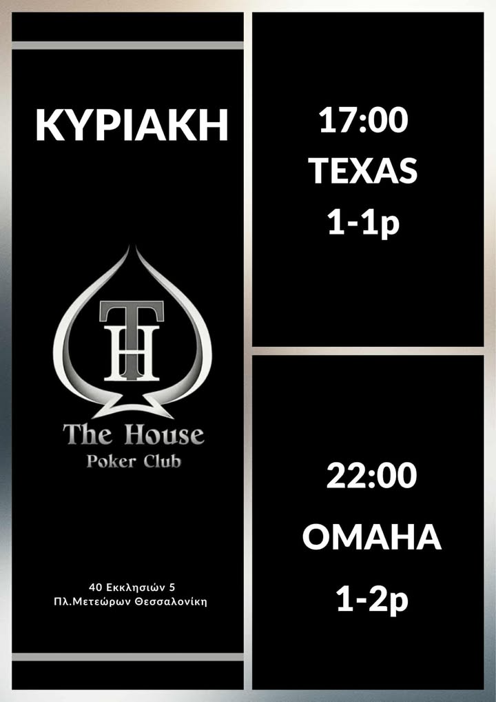 The House Poker Club: Texas games από τις 19:00 και Omaha games από τις 22:00