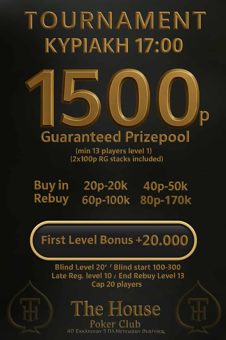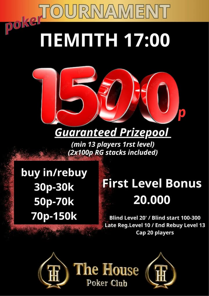 The House Poker Club: Τουρνουά στις 18:00 με 1.000p gtd και ring games