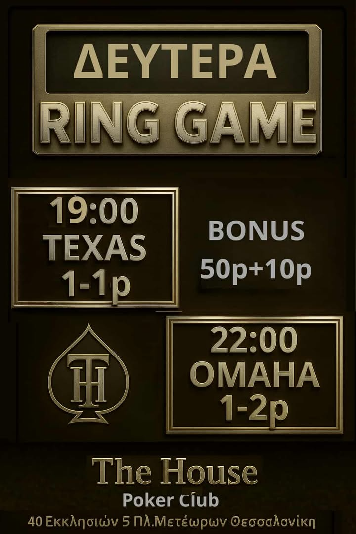 The House Poker Club: Τexas games από τις 19:00 και PLO games από τις 22:00